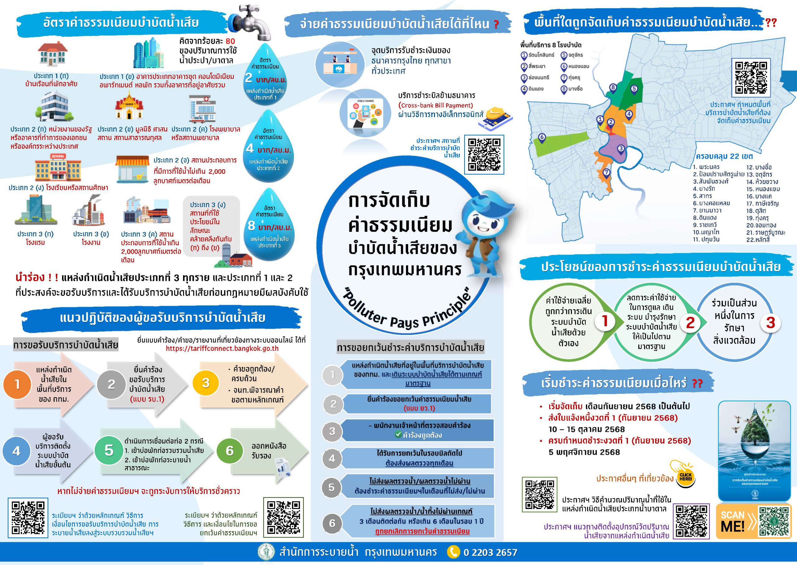 📢💧 ขอแจ้งประชาสัมพันธ์จาก สำนักการระบายน้ำ กรุงเทพฯ 🏛️ 📌 เรื่อง การจัดเก็บค่าธรรมเนียมบำบัดน้ำเสียของกรุงเทพฯ เพื่อให้ประชาชนและผู้ที่เกี่ยวข้องได้รับทราบข้อมูลอย่างถูกต้อง ครบถ้วน และเป็นปัจจุบัน 📂 เอกสารและข้อมูลที่เกี่ยวข้อง สามารถศึกษาได้จากลิงก์ด้านล่าง ดังนี้ 🔹 📘 คู่มือการจัดเก็บค่าธรรมเนียมบำบัดน้ำเสีย 👉 https://ebooks.dds.bangkok.go.th 🔹 ⚖️ ข้อบัญญัติกรุงเทพมหานคร พ.ศ. 2547 และ พ.ศ. 2562 👉 https://drive.google.com/drive/folders/1XOwE9Md2fUVl2vHvsZmykWuxLMrkbRna 🔹 📑 ระเบียบและประกาศที่เกี่ยวข้อง 👉 https://drive.google.com/drive/folders/1q3BMwBDtzRR5mIj2IzcY5QweHkly4Izq 🔹 🗺️ คู่มือแผนที่บริการบำบัดน้ำเสียของกรุงเทพมหานคร 👉 https://drive.google.com/drive/folders/1wEF4BH0zl2VFVNoCiYZtP3-HgT_Y6MJi 🔹 📰 โบรชัวร์อัตราค่าธรรมเนียมบำบัดน้ำเสีย 👉 https://drive.google.com/drive/folders/1pFxgo8AkMESBI1UxcjOVVlo6Tk1vGGKr 🔹 💻 เว็บไซต์สำหรับยื่นคำร้อง / คำขอออนไลน์ 👉 https://tariffconnect.bangkok.go.th 🙏 จึงเรียนมาเพื่อโปรดทราบ และขอขอบคุณทุกท่านที่ให้ความร่วมมือ ในการดูแลระบบบำบัดน้ำเสีย เพื่อสิ่งแวดล้อมที่ดีและคุณภาพชีวิตที่ยั่งยืนของคนกรุงเทพฯ 🌱🌍 . #สมาคมอาคารชุดไทย #ThaiCondominiumAssociation