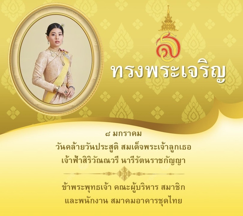 ๘ มกราคม วันคล้ายวันประสูติ สมเด็จพระเจ้าลูกเธอ เจ้าฟ้าสิริวัณณวรี นารีรัตนราชกัญญา . ควรมิควรแล้วแต่จะโปรดเกล้าโปรดกระหม่อม . ข้าพระพุทธเจ้า คณะผู้บริหาร สมาชิก และพนักงาน สมาคมอาคารชุดไทย
